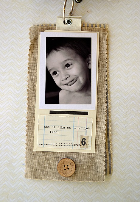I also had time to make a mini of little Chase! Just like this mini I chose a subject and took a series of photos to use. It's a simple idea for an album! The fabric pages are fabric swatches, (I scored an entire book of swatches from a local upholstery fabric store!) and the fabric tabs at the top of each page are from Home Depot.